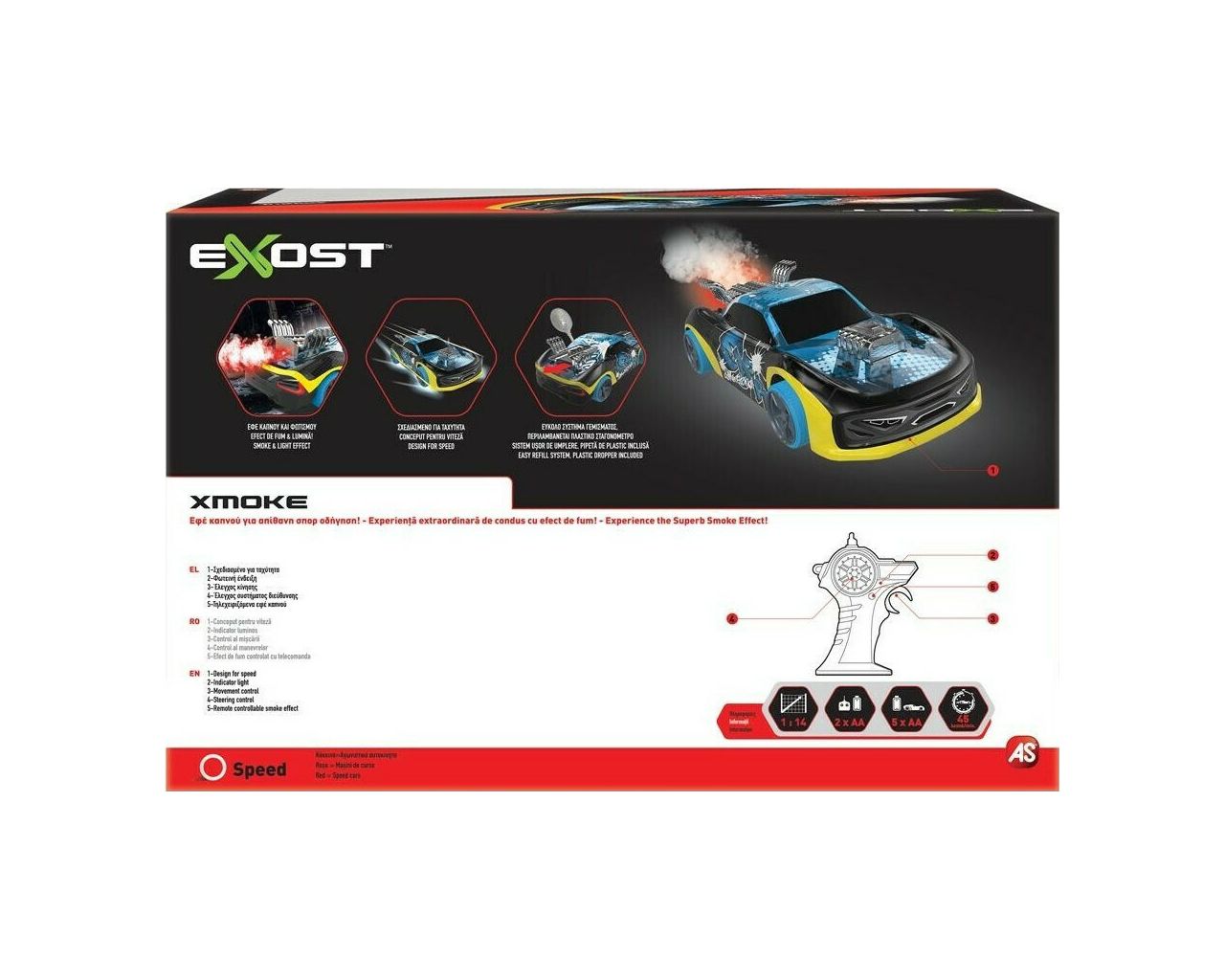 Ζήσε την εμπειρία των εφέ καπνού της σπορ οδήγησης με το τηλεκατευθυνόμενο αυτοκίνητο Exost Xmoke! Εφέ καπνού και LED φώτα προσθέτουν μοναδικό στιλ στην οδήγησή σου. Λεπτός, αεροδυναμικός, urban σχεδιασμός που ταιριάζουν απόλυτα σε ένα αγωνιστικό αυτοκίνητο. Τα εφέ καπνού από την εξάτμιση όπως και τα φώτα είναι τηλεχειριζόμενα για να έχεις τον απόλυτο έλεγχο με το πάτημα ενός κουμπιού. Εύκολο σύστημα γεμίσματος νερού για να γίνεσαι συνεχώς καπνός! Εξοπλισμένο με τεχνολογία 2.4Ghz για αγώνα ενάντια σε πολλαπλούς αντιπάλους!