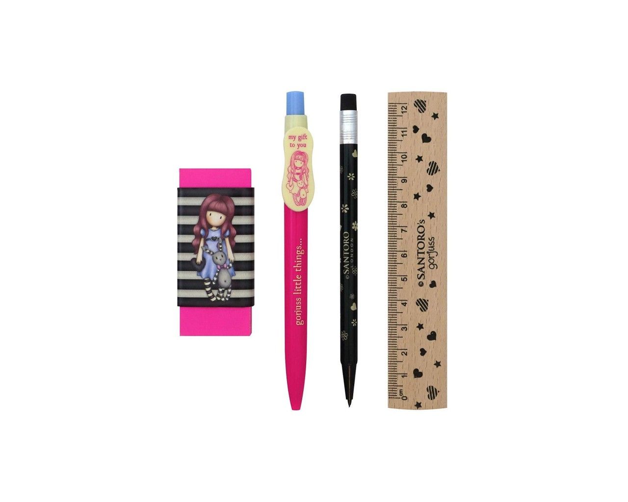 - Το σχολικό σετ περιλαμβάνει ένα σημειωματάριο με ριγέ σελίδες και σκληρό εξώφυλλο που απεικονίζει τα αγαπημένα σχέδια της Gorjuss!