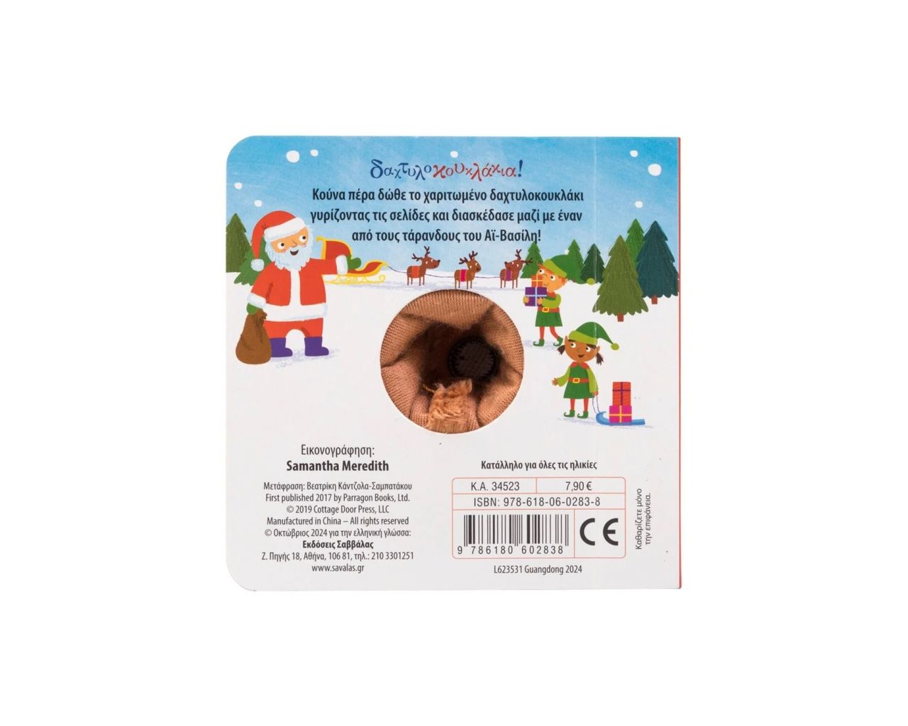 Κούνα πέρα δώθε το χαριτωμένο δαχτυλοκουκλάκι γυρίζοντας τις σελίδες και διασκέδασε μαζί με έναν από τους τάρανδους το Αϊ-Βασίλη!