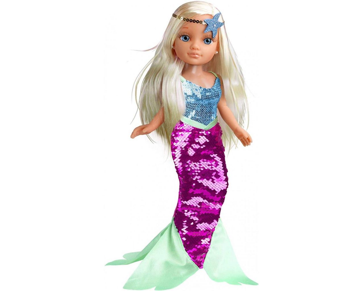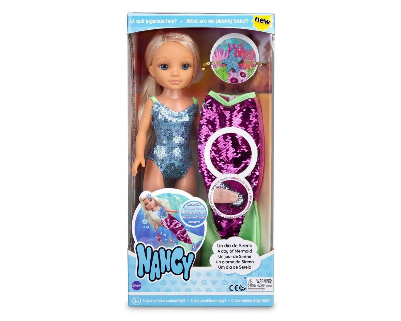 Η συσκευασία περιέχει: Κούκλα Nancy 43 εκ. με μαγιό. Φούστα/ουρά με παγιέτα διπλής όψης, ανθεκτική στο νερό, κορδέλα μαλλιών, χρωματιστό κερί.