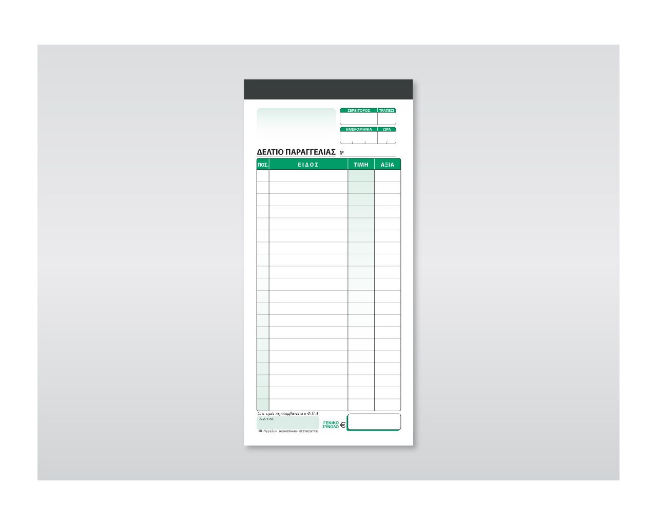 Δελτίο Παραγγελίας Εστιατορίου Μονόφυλλο