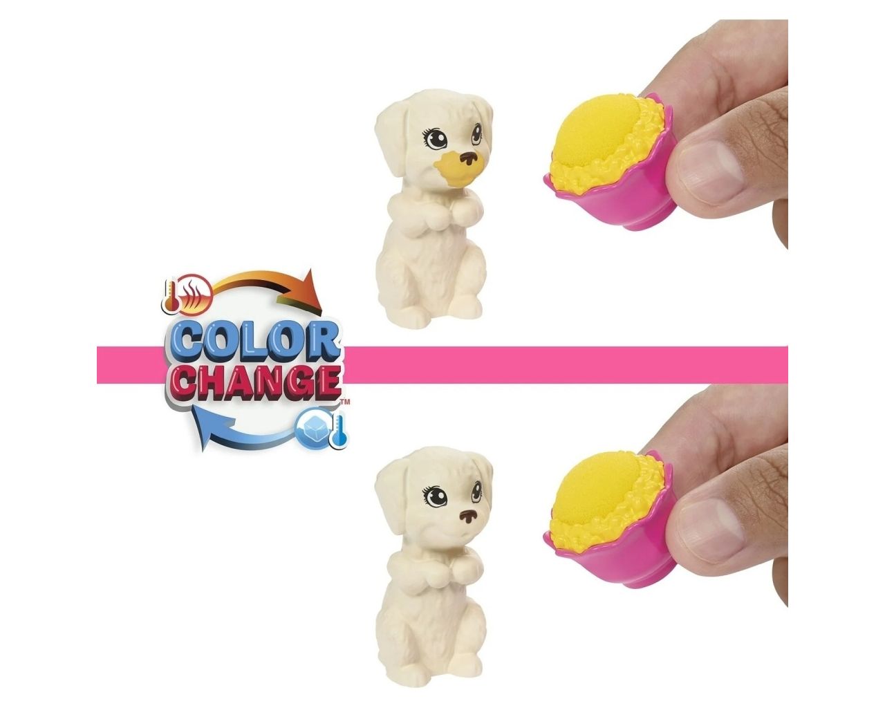 Για ακόμη περισσότερη διασκέδαση, τα παιδιά μπορούν να μετατρέψουν τη μουσουδίτσα του κουταβιού από καθαρή σε 'βουτυράτη', χρησιμοποιώντας παγωμένο και ζεστό νερό. H Barbie είναι έτοιμη για μια υπέροχη νύχτα στο σπίτι, φορώντας το νυχτικό και τις παντόφλες της. Και οι 3 φίλοι έχουν από μία μάσκα ύπνου για να δουν τα πιο γλυκά όνειρα!