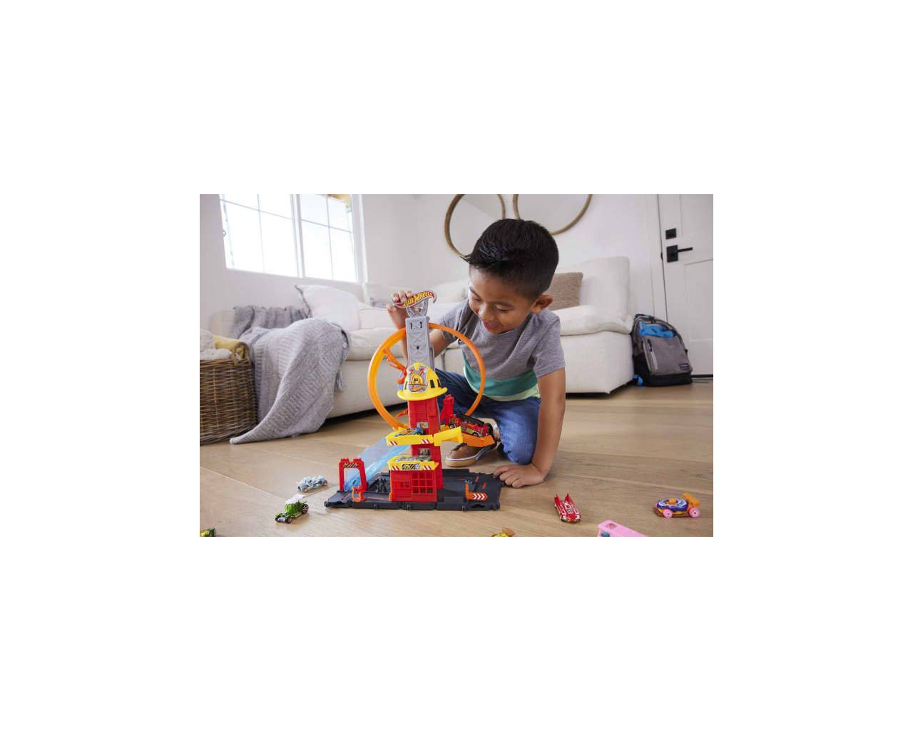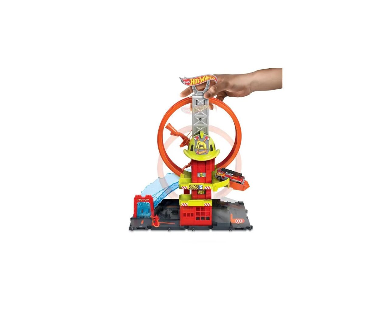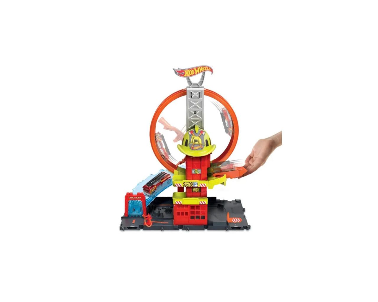 Το σετ παιχνιδιού Hot Wheels City Πίστα Πυροσβεστικός Σταθμός βασίζεται σε ένα αγαπημένο θέμα των παιδιών με ένα πολυεπίπεδο, ρυθμιζόμενο λουπ και προωθητή που ωθεί τα αυτοκίνητα μέσα από τον σταθμό και κάτω από μια ημιδιαφανή ράμπα που μοιάζει με νερό. Η βάση διαθέτει συναρπαστικές λεπτομέρειες που εμπνέουν τη δημιουργική αφήγηση, καθώς και συνδέσμους για να τη συνδέσετε με άλλα σετ Hot Wheels. Κάθε σετ πωλείται ξεχωριστά, ανάλογα με τη διαθεσιμότητα. Περιλαμβάνεται ένα πυροσβεστικό όχημα Hot Wheels. Τα χρώματα και τα σχέδια μπορεί να διαφέρουν.