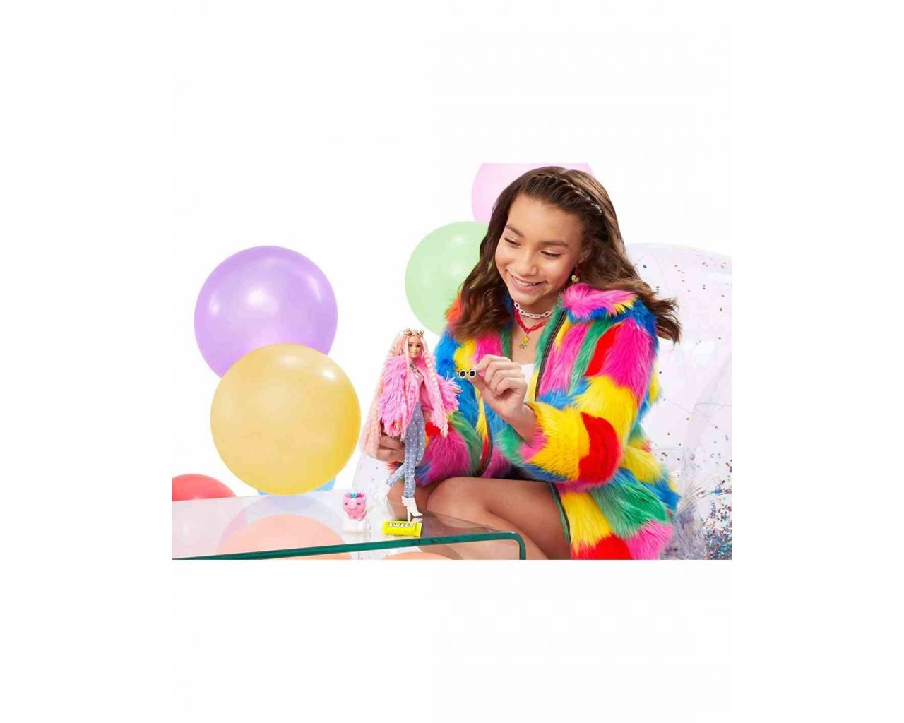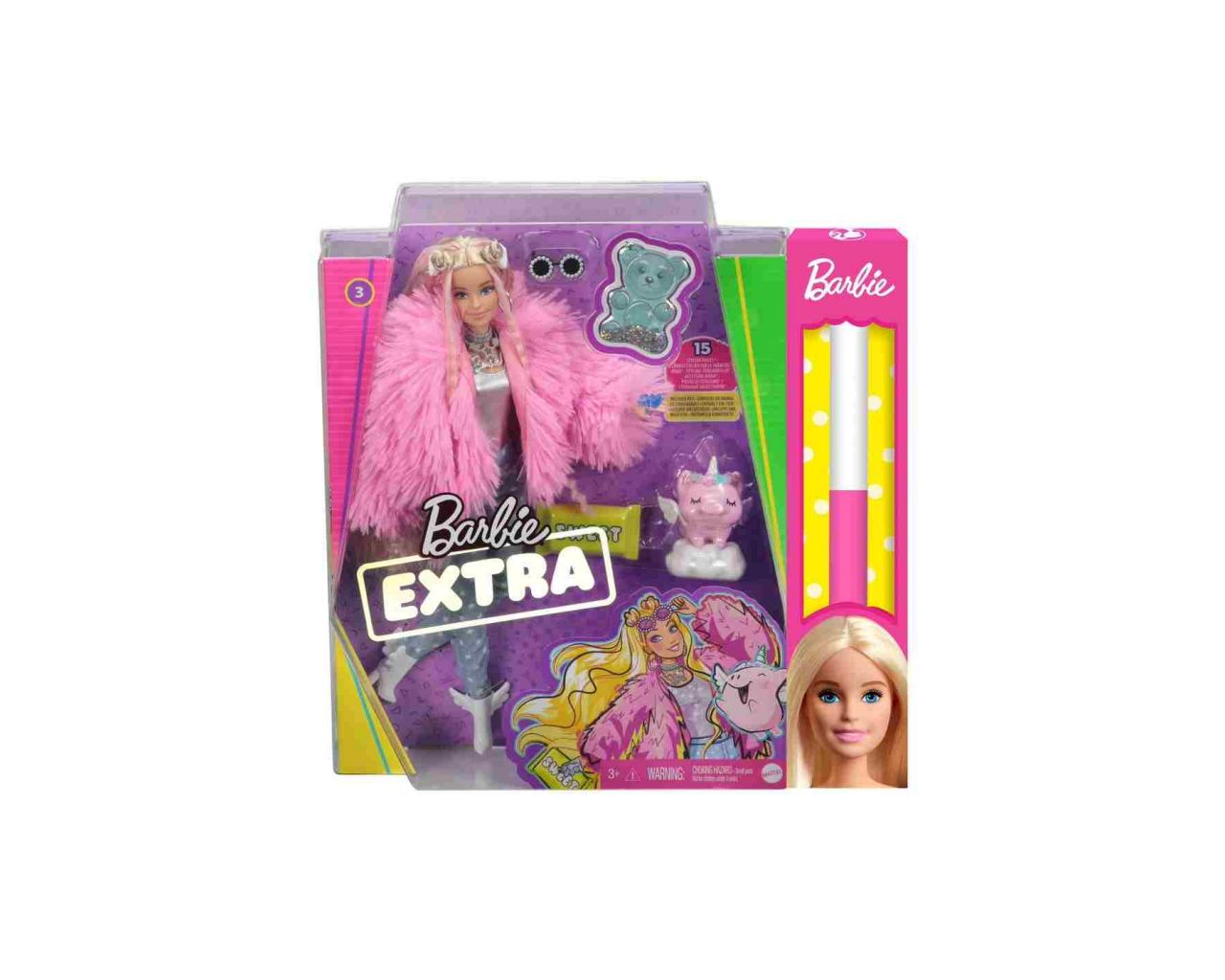 Mattel Λαμπάδα Barbie Extra Doll In Pink Fluffy Coat With Unicorn Pig Toy, GRN28, 1 τμχ (GRN28)