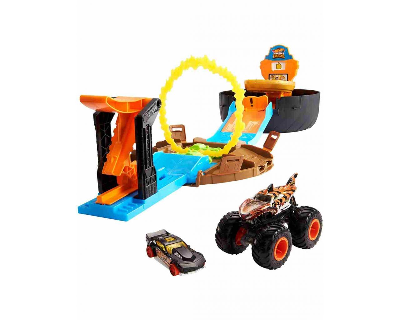 - Το Hot Wheels® Monster Trucks Σούπερ Λουπ κλείνει και έχει λαβή για μεταφορά και ανοίγει για να αποκαλύψει μια κορυφαία αρένα κόλπων για πολλές συγκρούσεις και αποθήκευση.