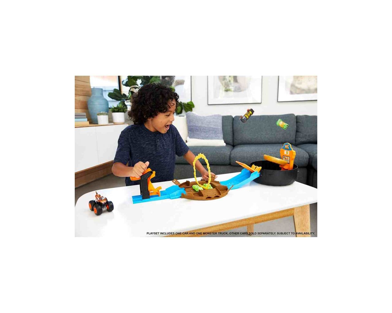Όταν ανοίξει το σετ ,αποκαλύπτει έναν εκτοξευτή είτε για δύο αυτοκίνητα είτε για ένα monster truck που μπορεί να απογειωθεί και να περάσει μέσα από ένα ""δαχτυλίδι φωτιάς"".
