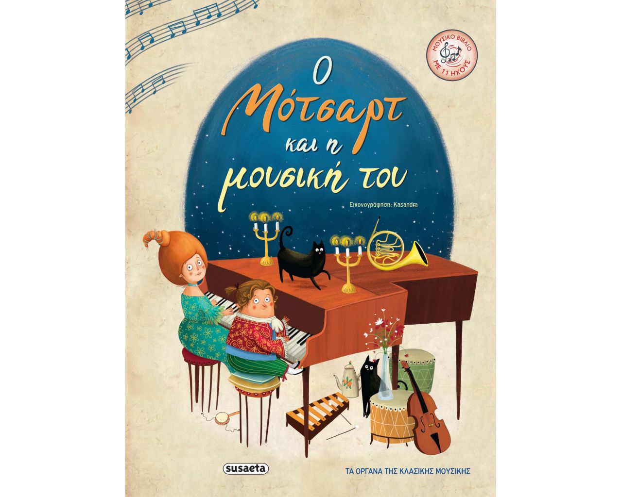 Όλες οι ιδιοφυΐες υπήρξαν κάποτε παιδιά. Μπες στον κόσμο του μικρού Βόλφγκανγκ Αμαντέους Μότσαρτ και της εξίσου ταλαντούχας αδελφής του Νάνερλ και ταξίδεψε μαζί τους με οδηγό τη φαντασία, τα αστέρια και φυσικά… τις μελωδίες! Καθώς θα διαβάζεις την ιστορία, κάθε σελίδα θα γεμίζει μουσική! Πάτησε τα κουμπιά και ανακάλυψε τον πανέμορφο ήχο των οργάνων της κλασικής μουσικής!