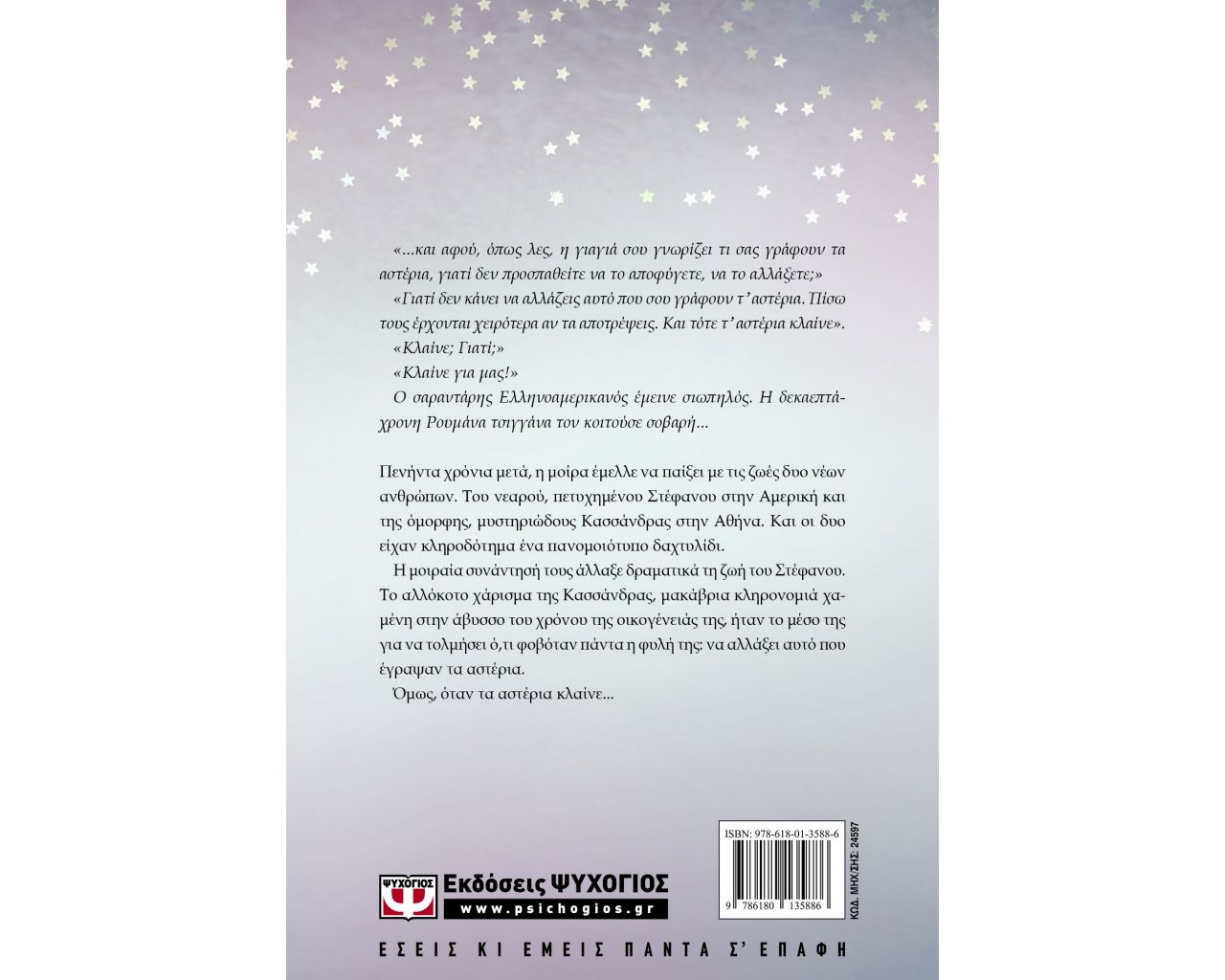 Η μοιραία συνάντησή τους άλλαξε δραματικά τη ζωή του Στέφανου. Το αλλόκοτο χάρισμα της Κασσάνδρας, μακάβρια κληρονομιά χαμένη στην άβυσσο του χρόνου της οικογένειάς της, ήταν το μέσο της για να τολμήσει ό,τι φοβόταν πάντα η φυλή της: να αλλάξει αυτό που έγραψαν τα αστέρια.