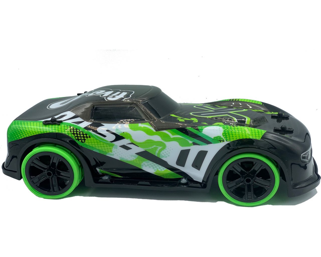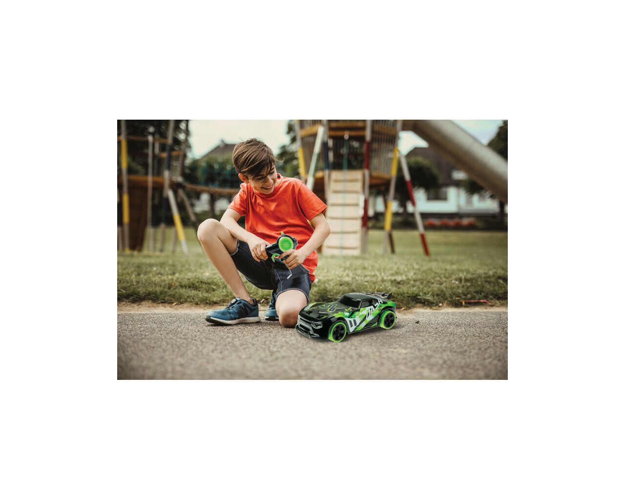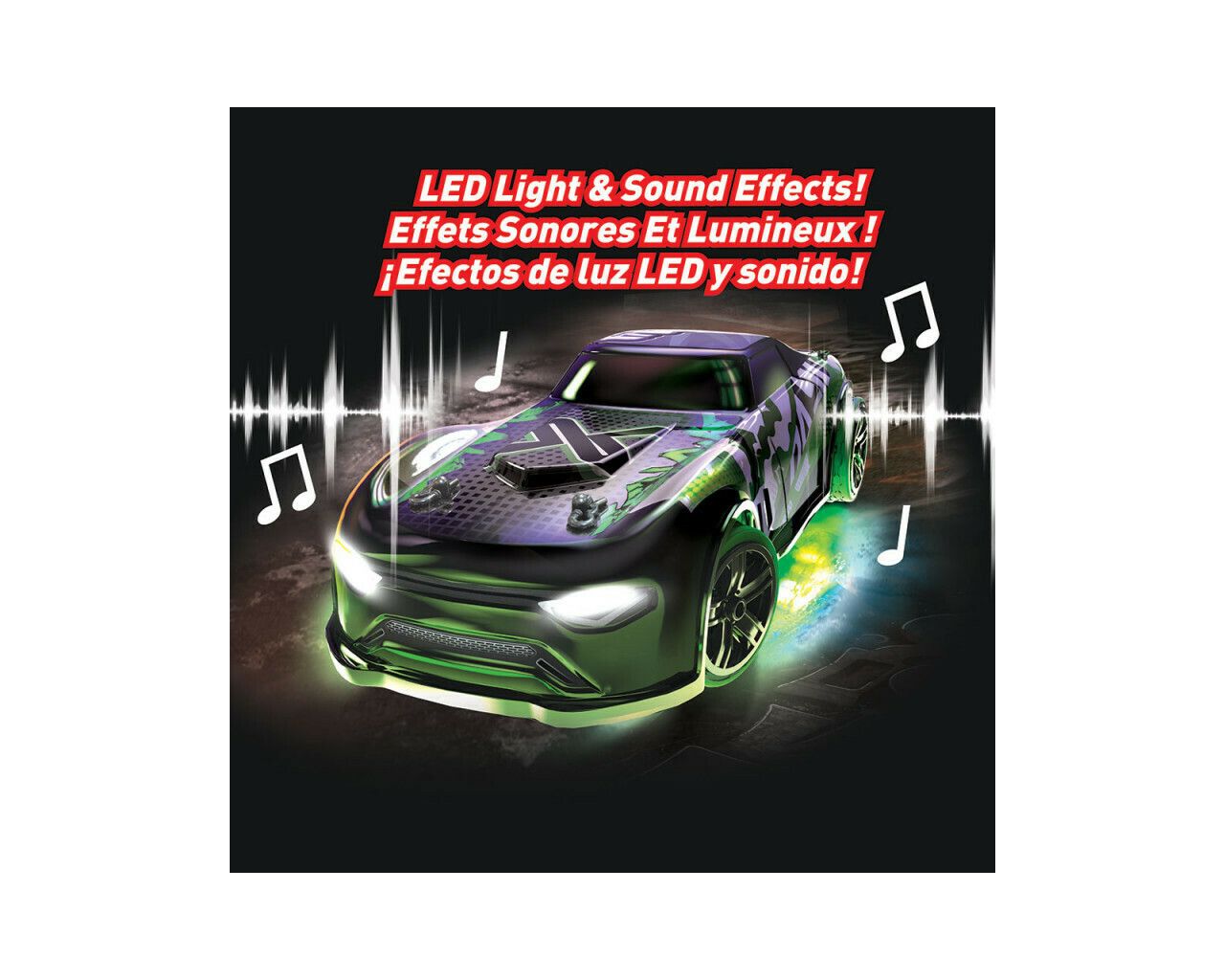 Εντυπωσιακός ήχος και εκθαμβωτικός φωτισμός με το πιο trendy αυτοκίνητο Exost Lightning Dash! Το Lightning Dash έχει τον πιο μοντέρνο σχεδιασμό με μοναδικά, τηλεχειριζόμενα εφέ φωτισμού και ήχου. Ένα super car με εφέ λάμψης στο κάτω μέρος του αμαξώματος. Με το πάτημα ενός κουμπιού χειρίζεσαι όλα τα ηχητικά εφέ. Εξοπλισμένο με τεχνολογία 2,4GHz που υποστηρίζει πολλαπλούς παίκτες για ακόμα μεγαλύτερη διασκέδαση. Λειτουργίες και Χαρακτηριστικά: