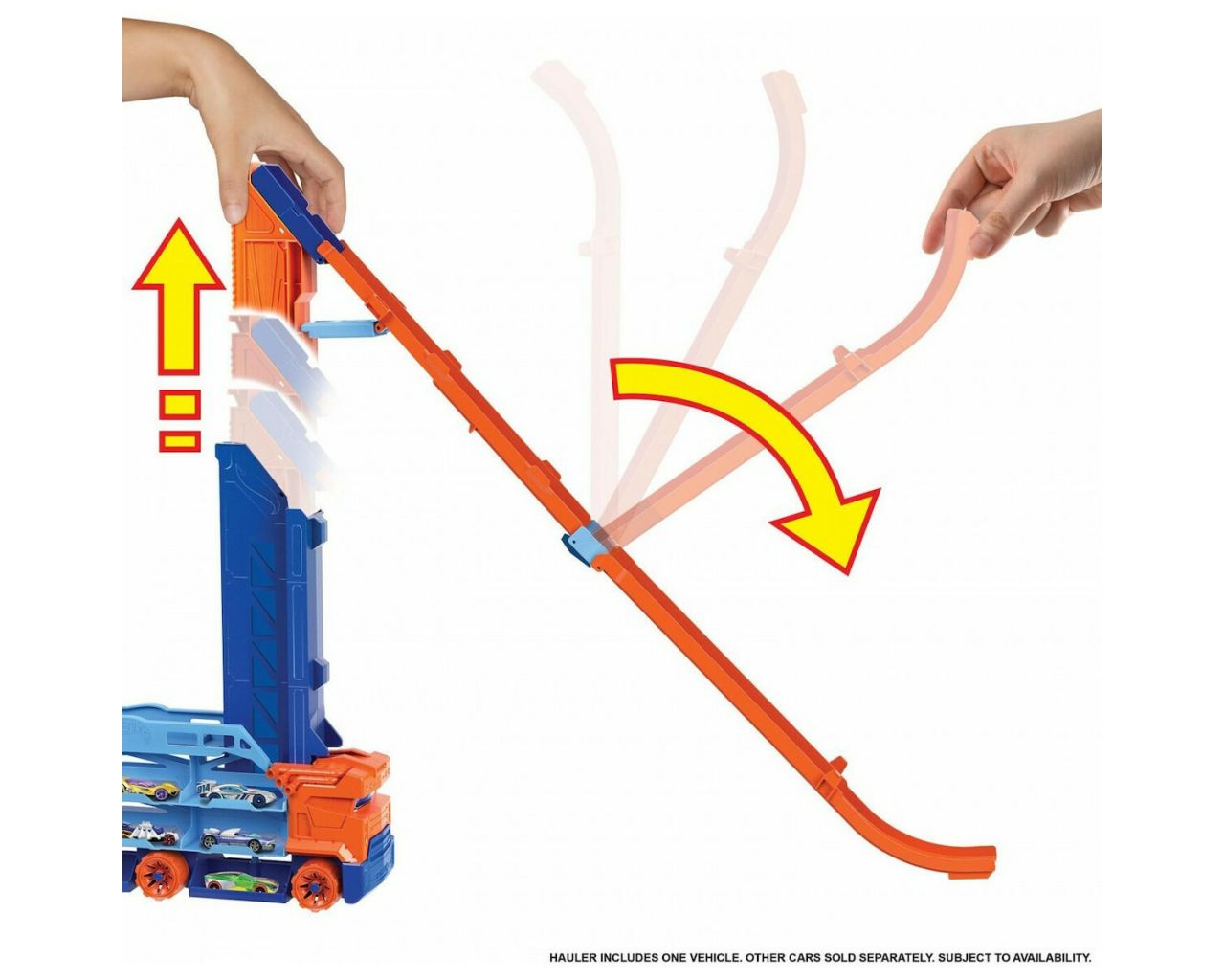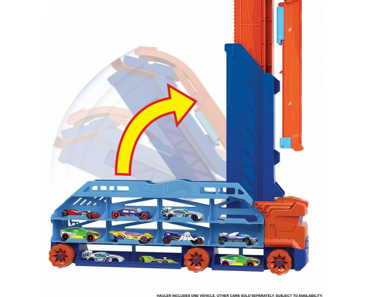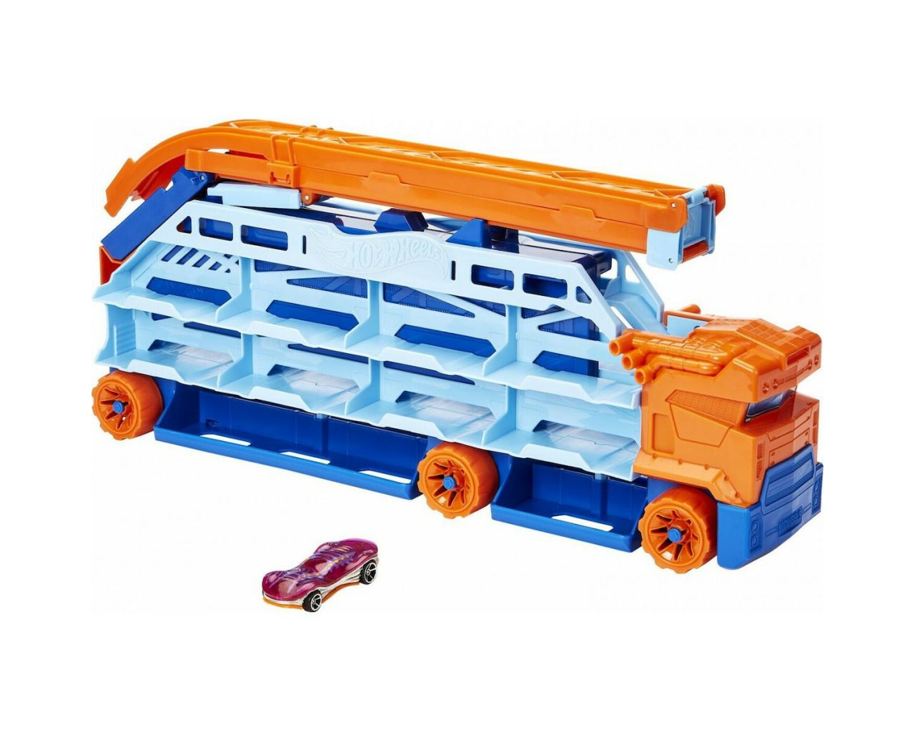 Η Νταλίκα Αυτοκινητόδρομος Hot Wheels City συνδυάζει την ευκολία ενός εντυπωσιακού φορτηγού Hot Wheels με την απίθανη εμπειρία μιας κατακόρυφης πίστας αγώνων 60 εκατοστών που συνδέεται με άλλα σετ.
