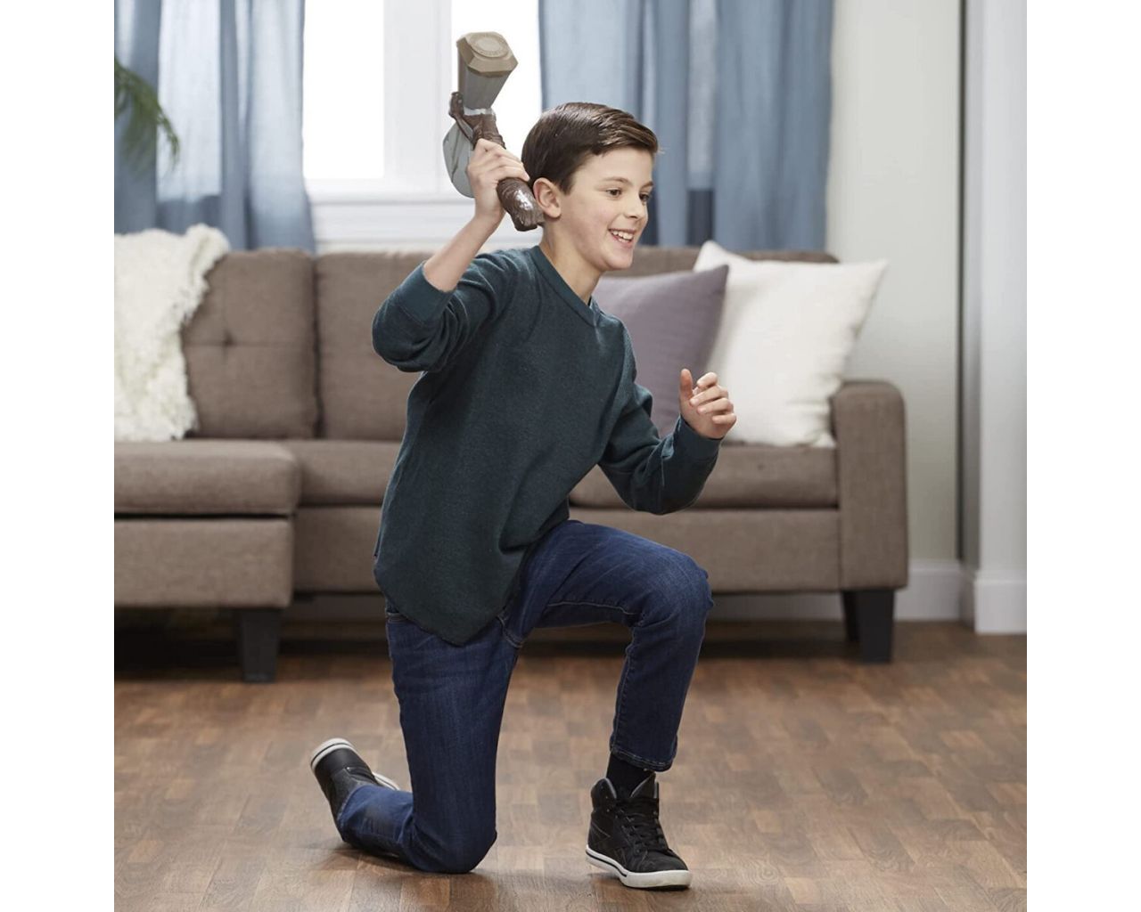 Σφυρί του Thor κατάλληλο για ηλικίες από 5 ετών και άνω. Με το πάτημα ενός κουμπιού στη λαβή του σφυριού, τα παιδιά μπορούν να ενεργοποιήσουν τον συναρπαστικό ήχο βροντής.