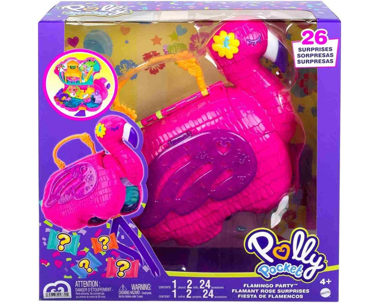 Mattel Polly Pocket Flamingo Party Πινιάτα Έκπληξη, 26 Εκπλήξεις Κούκλες Margot & Friend, Pop And Swap Feature HGC41 (HGC41)