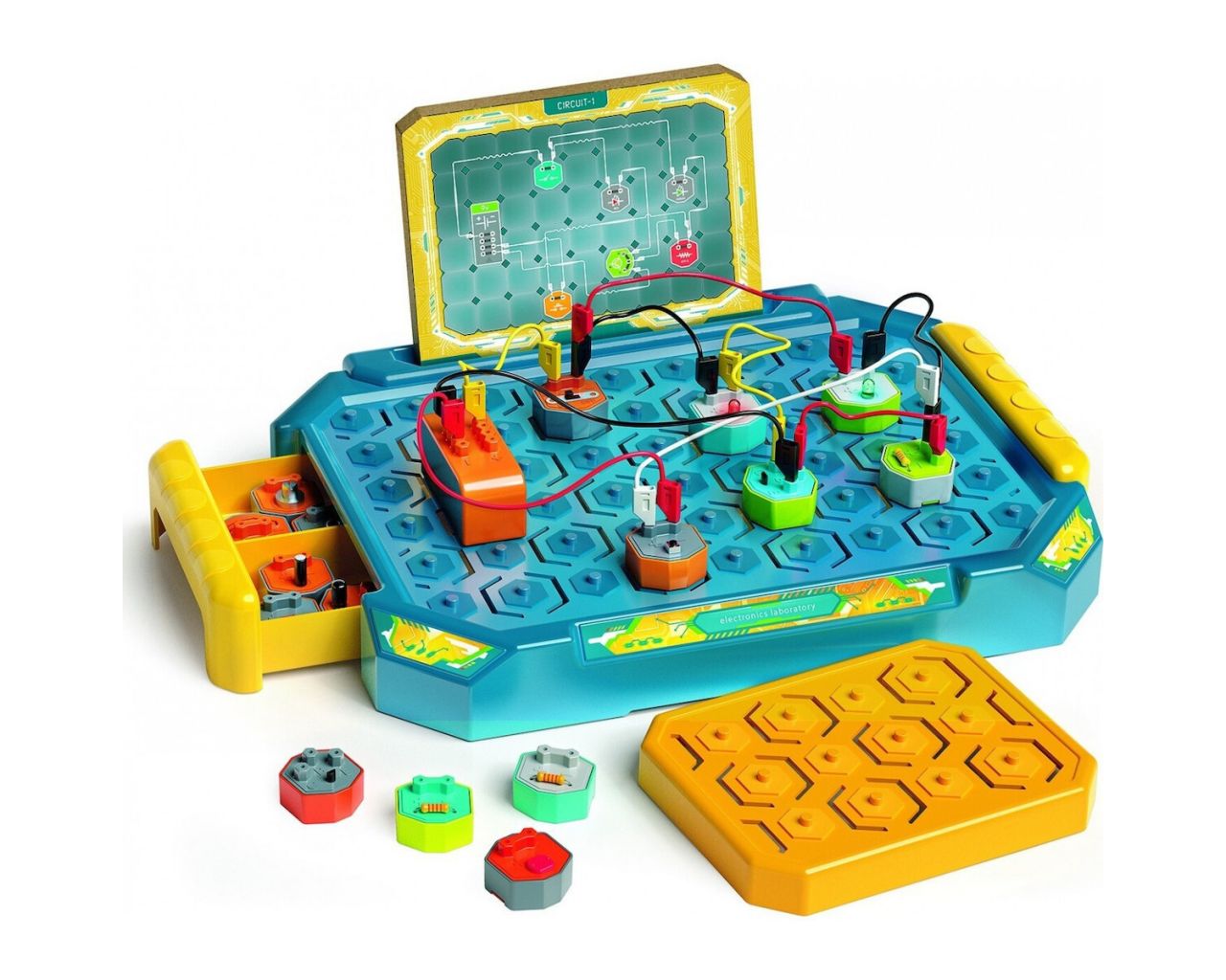 Ξεκινήστε την περιπέτειά σας στον κόσμο της ηλεκτρικής ενέργειας με ένα εργαστήριο για την κατασκευή λειτουργικών ηλεκτρονικών κυκλωμάτων! Με πατενταρισμένες μονάδες η δημιουργία ηλεκτρικών κομματιών γίνεται απίστευτα διασκεδαστική! Με τα ηλεκτρονικά, τα φώτα και οι αισθητήρες ενεργοποιούνται συνδέοντας μονάδες και σύρματα με απόλυτη ασφάλεια πάνω στο ειδικό ταμπλό.