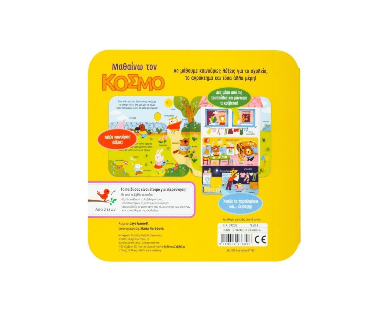 Ας μάθουμε καινούριες λέξεις για το σχολείο, το αγρόκτημα, τον κόσμο γύρω μας! Άνοιξε τα παραθυράκια και δες τις εκπλήξεις που κρύβουν! Κοίταξε μέσα από τις τρυπούλες και μάντεψε τι κρύβεται!