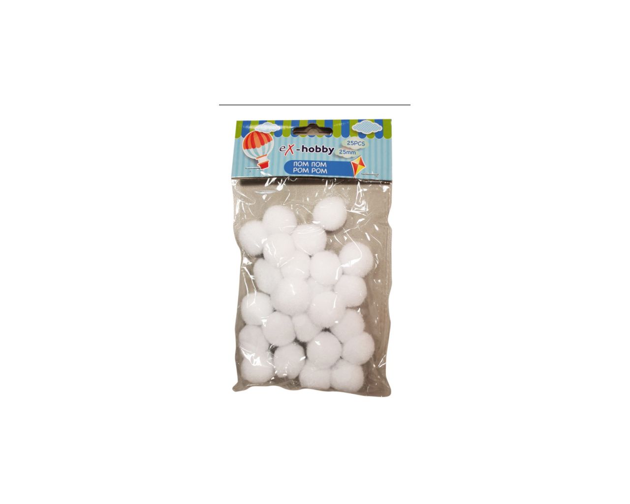 Σφουγγάρι Pom - Pom Χειροτεχνίας Λευκά Exas Paper 2,5cm 25τμχ 402416