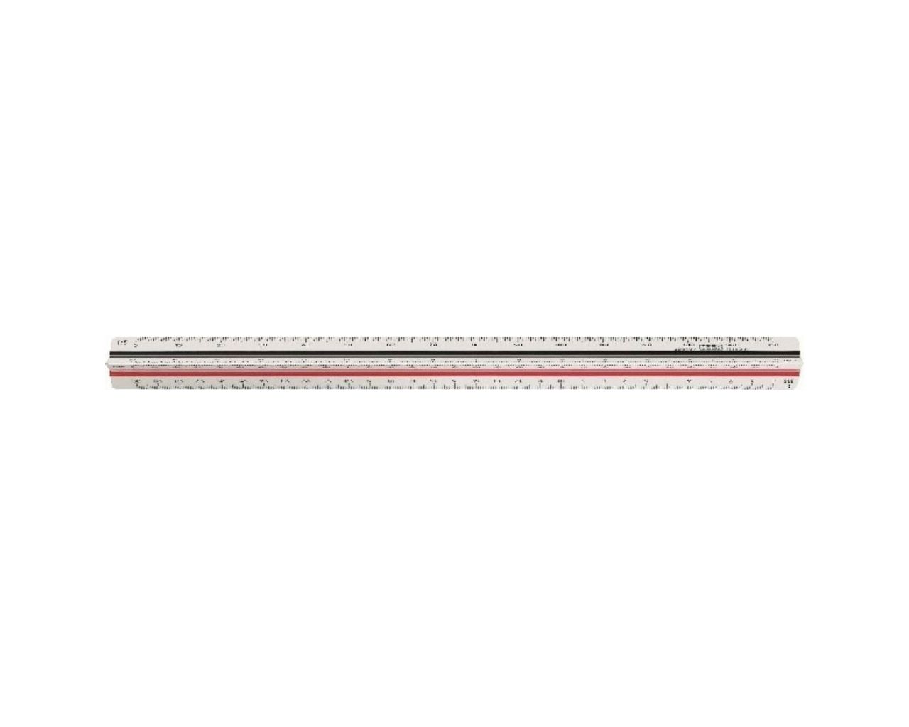 Κλιμακόμετρο από πλαστικό σε λευκό χρώμα, μήκους 30 εκατοστών. Χρησιμοποιείται για τη σχεδίαση ή την ανάγνωση διαστάσεων που βρίσκονται υπό κλίμακα, όπως αρχιτεκτονικά σχέδια ή χάρτες.