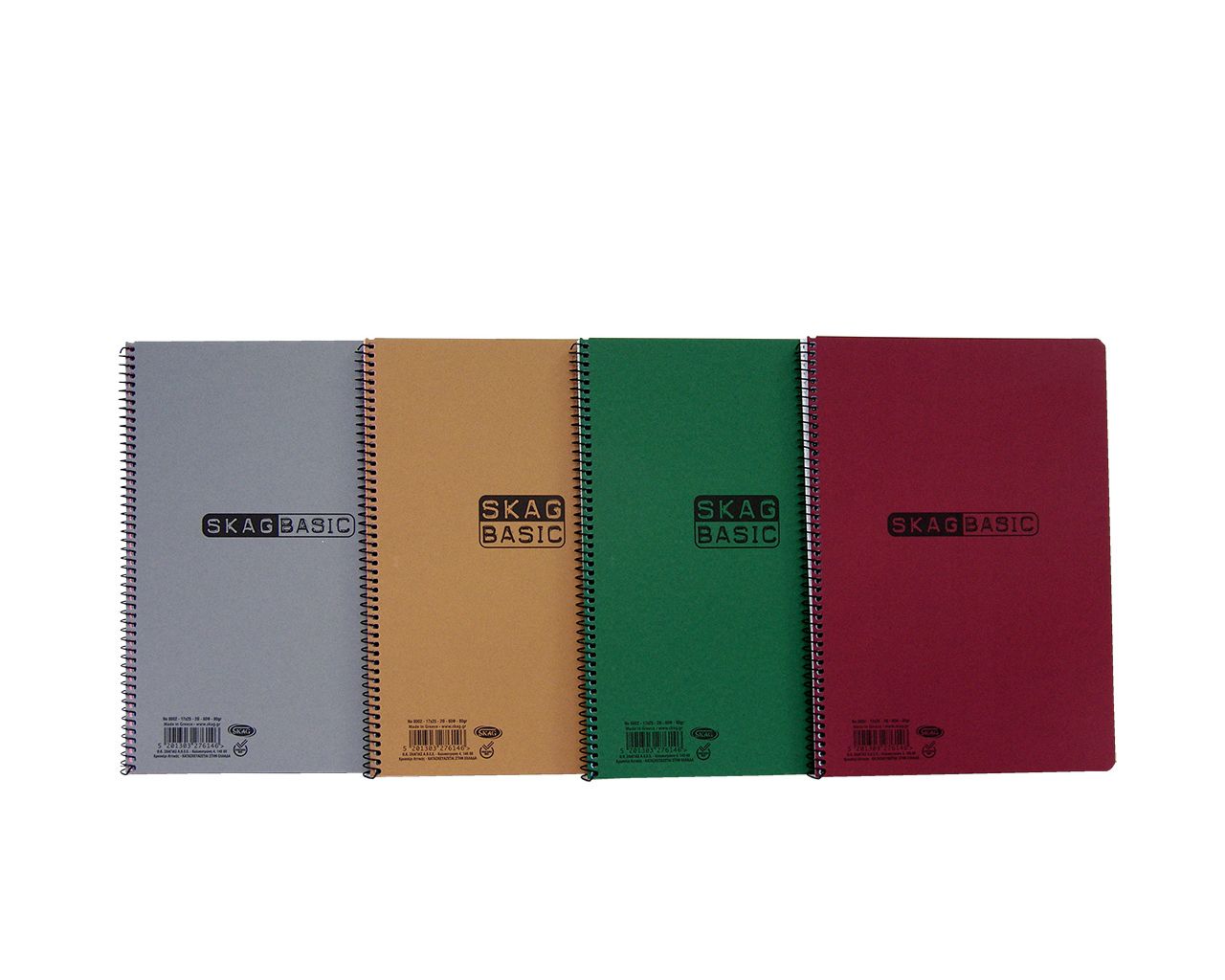 Θεματικά τετράδια "SKAG BASIC" από ανθεκτικό ανακυκλωμένο χαρτόνι σε γήινους χρωματισμούς και διακριτικό σχεδιασμό για φοιτητές και επαγγελματίες. Διατίθενται σε δύο μεγέθη Α4 και 17Χ25, σε 2 έως 5 θεμάτων και 80 γρ. χαρτί από ελεγχόμενα καλλιεργημένα δάση.
