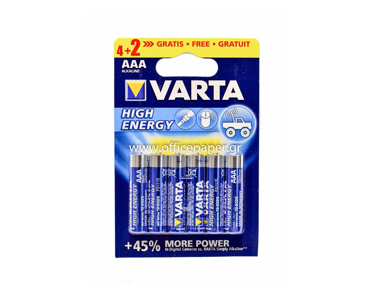 Μπαταρίες Αλκαλικές Varta High Energy AAA 4903 1.5V 6 Τεμαχίων