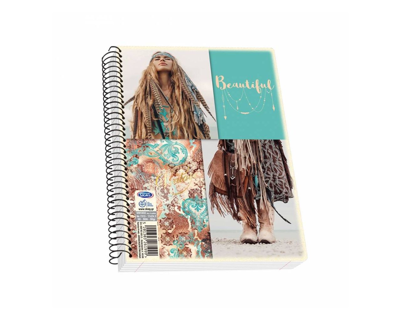 Τετράδιο Skag Σπιράλ VINTAGE 17X25 2Θεμάτων Διάφορα σχέδια ΝΟ7312