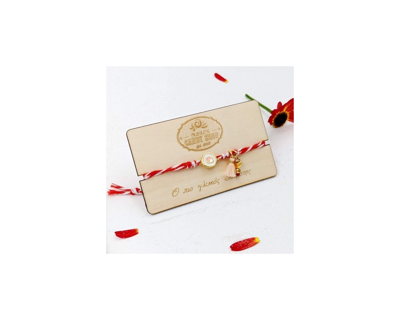 Βραχιόλι μαρτάκι με άσπρο κόκκινο κορδόνι
