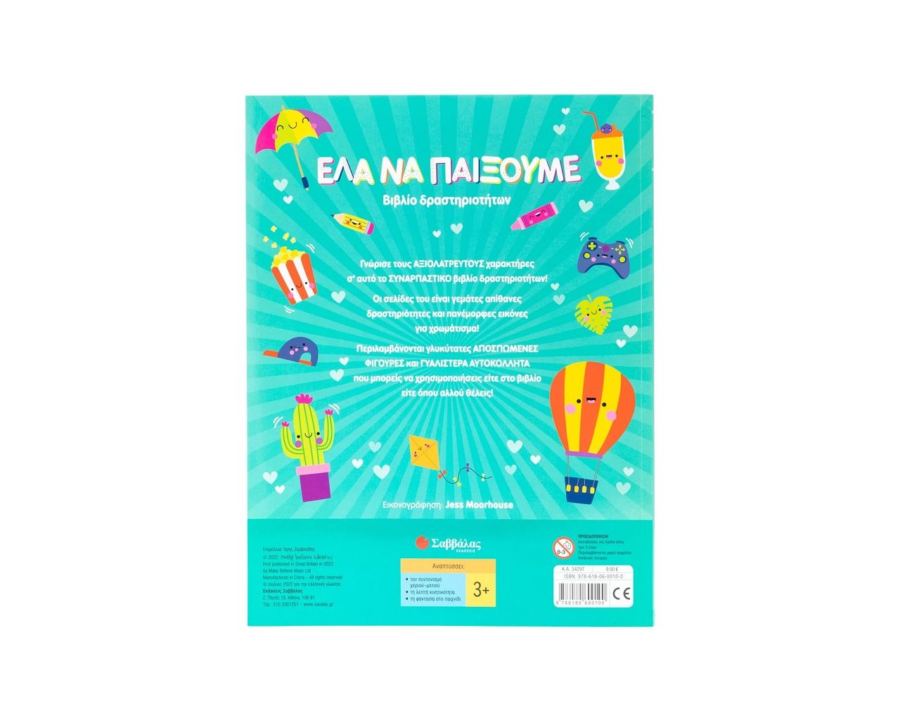 Γνώρισε τους αξιολάτρευτους χαρακτήρες σε αυτό το συναρπαστικό βιβλίο δραστηριοτήτων! Οι σελίδες του είναι γεμάτες απίθανες δραστηριότητες και πανέμορφες εικόνες για χρωμάτισμα! Περιλαμβάνονται γλυκύτατες αποσπώμενες φιγούρες και γυαλιστερά αυτοκόλλητα που μπορείς να χρησιμοποιήσεις είτε στο βιβλίο είτε όπου αλλού θέλεις! Αναπτύσσει τον συντονισμό χεριού-ματιού, τη λεπτή κινητικότητα, τη φαντασία στο παιχνίδι.
